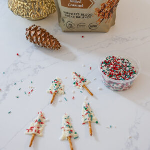 - Drizzle the mixture onto pretzels to form tree shapes.